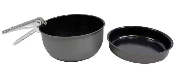 Im Set enthalten ist ein Topf (1,5 Liter), eine Pfanne, ein Griff und eine Tasche